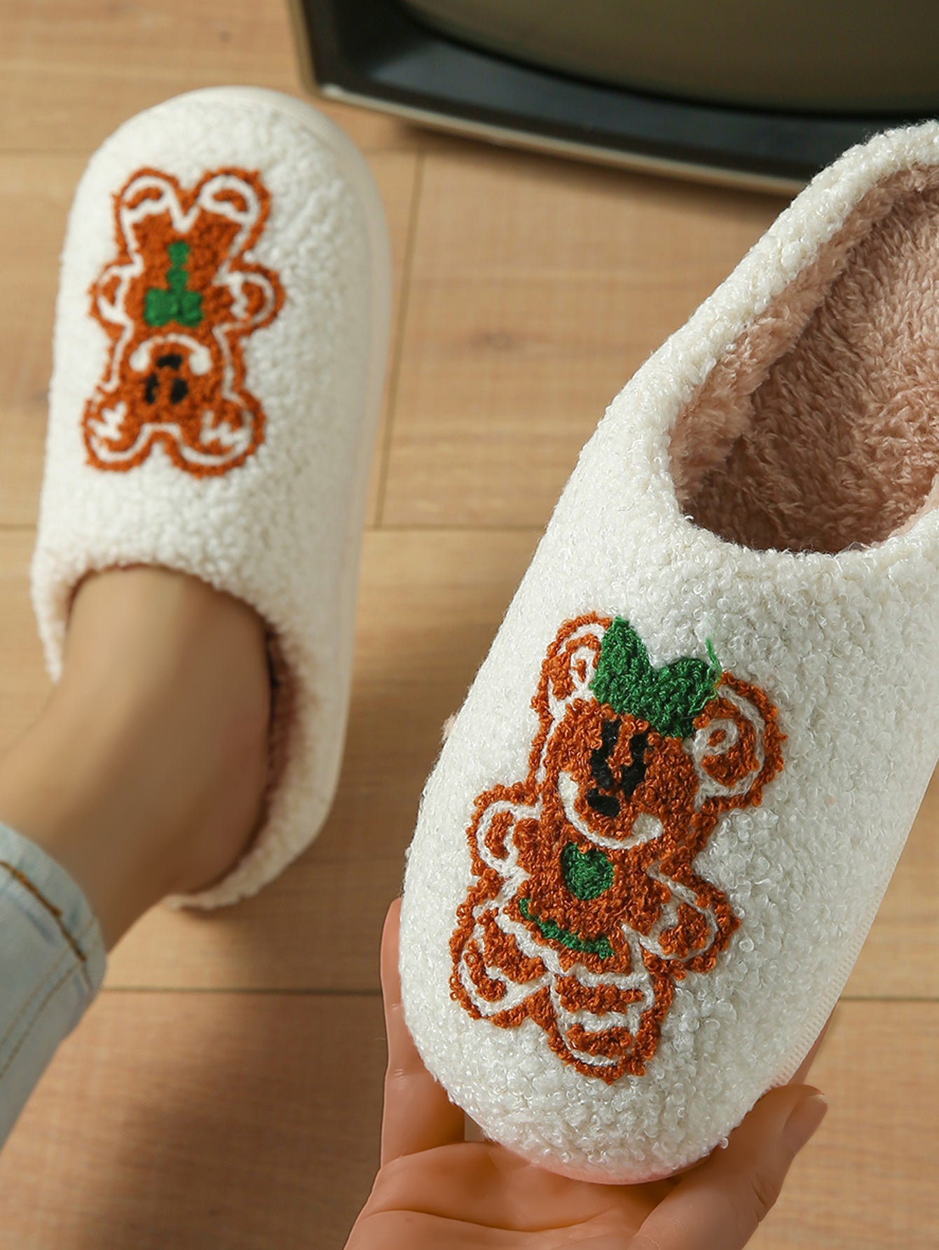 Bulk Slippers | Unisex Gingerbread Man Fuzzy Slippers Winter Warm Indoor Home Shoes Wholesale